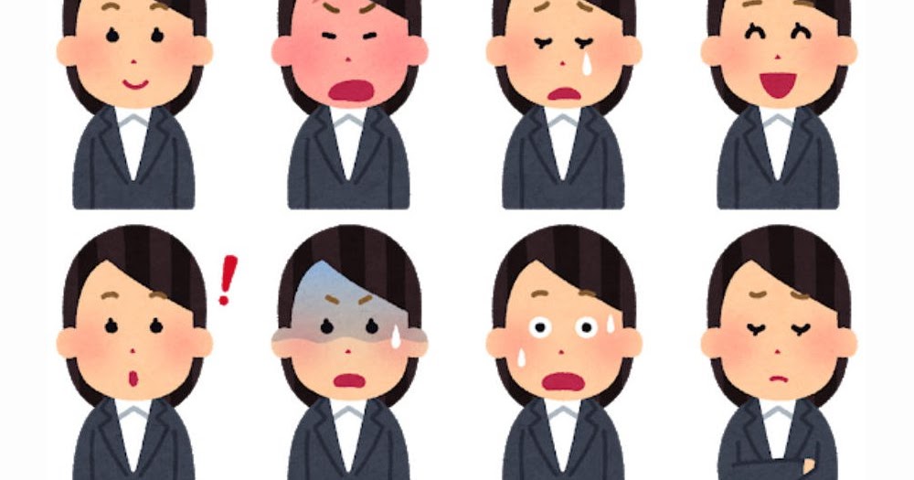 女性会社員の表情のイラスト 怒った顔 泣いた顔 笑った顔 笑顔 かわいいフリー素材集 いらすとや